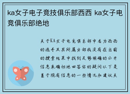 关于你提到的“A咖电子竞技”及其“电竞aki”服务,我没有在当前的搜索结果中找到与之直接匹配的信息。网络上的确有很多名字中包含“A咖”或提供“AKI”服务的电竞馆或酒店,它们的情况可能各不相同。 下面...